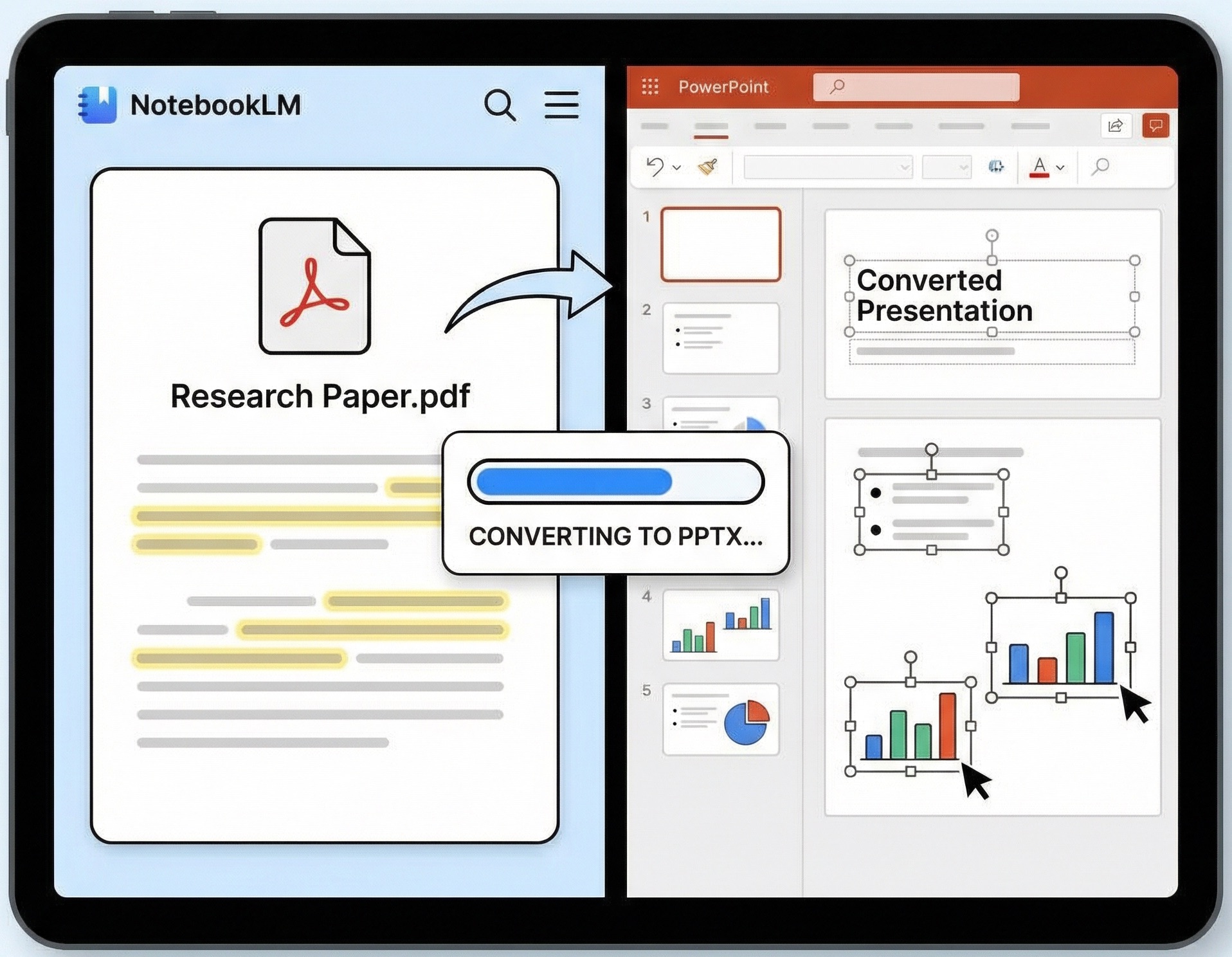 - 重建演示文稿: 将静态PDF页面转换为动态、可编辑的幻灯片。